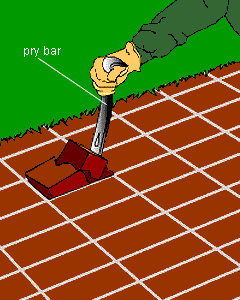 Use a flat pry bar to pry out the old brick. You may need to crack the brick and take it out in pieces. If it is a tight fit, try using two putty knives or trowels, one on each end, to shoehorn the brick straight up.