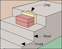 Press a board the height of the step against the riser to serve as a form. Apply concrete, packing groove full. Level with top of board.