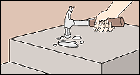 For patching material, mix one part cement with three parts sand and just enough water to make it doughy. Or purchase special premixed patching compounds available in cartridges. Trowel this mixture into the damaged area, packing with the trowel's tip and smoothing with its edge.