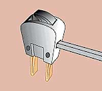 Attaching a quick-connect plug Snip off the old plug. Lift the lever on top of the new plug and insert the zip cord into the hole.