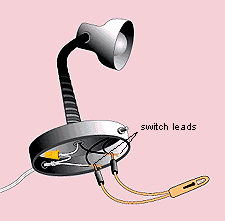 Small switches that mount on fixtures work by pull chain, flipping up and down, or twisting. These switches are not long-lived, so if the light does not work and the bulb is not blown, there is a good chance that the problem is with the switch. To test, shut off power to the fixture (or unplug it). Remove the connectors holding the switch's leads. Leave the bare wires twisted together, and arrange them so the connections are not in danger of touching each other or anything else. Restore power to the fixture and carefully touch a neon tester to the connections. If the switch is turned on and the tester lights, the switch is bad. |