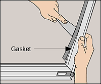 In an aluminum storm window, a rubber gasket, forced into place with a putty knife, holds the glass.