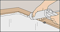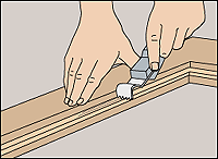 Apply a 1/4-inch bead of glazing compound. Press it into place to make sure it sticks to both glass and wood.