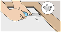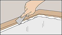 Scrape away the last of the old compound, then roughen the groove with a scraper so the new glazing compound will adhere properly.