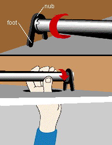 Turn the outermost piece of the brace bar until it locks into the nub. Continue turning until the first foot is fastened. Next, turn the innermost bar to fasten the other foot.