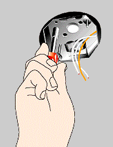 Cut a hole in the ceiling about 5 inches in diameter (see Installing Boxes in Finished Space, Related Projects, for tips on locating it). Most brace bars have a screwlike fastener at each end that fixes the bar in place. Tip the bar through the hole, then center it over the hole, perpendicular to the joists.
