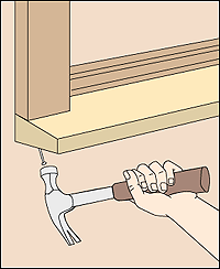 Using rust-resistant nails, secure the sill from underneath. Countersink the nails, then caulk the nailheads and the ends of the sill.