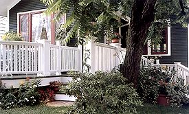 Bigger isn't always better. Case in point: The small backyard of this house would be overwhelmed by an expansive deck. A well-proportioned deck graced with an arbor and a fence provide an elegant, private outdoor room. The grey and white paint scheme neatly complements the home's color.
