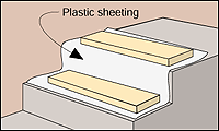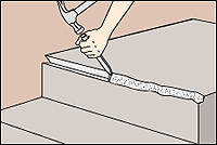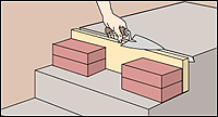 Press a board the height of the step against the riser to serve as a form. Apply concrete, packing groove full. Level with top of board.