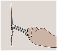 Widen the crack to about 1/8 inch with a chisel and blow out any loose plaster. |