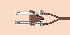 Some plugs have a clamp that grips the cord where it enters the base. For these plugs, it is not necessary to tie an underwriters knot. Simply slide the plug onto the cord and strip about 1/2 inch of insulation from the ends of the three wires. Twist the strands tight, and use needle-nose pliers to form hooks. |