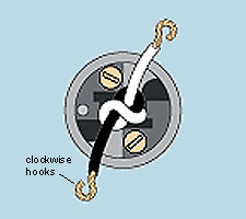 3. Prepare the wire ends Twist the wire strands tight. With a pair of needle-nose pliers, shape clockwise hooks to wrap around the screw shafts. |