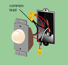 Most dimmers have a set of leads, or short wires, instead of screw terminals. Hook up a single-pole dimmer as shown. Most dimmers are deeper than conventional switches, so you may have to rearrange wires in the box before you can fit one in. Don't force dimmers, because they crack easily. If there are too many wires, order a thin-profile unit.