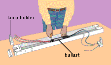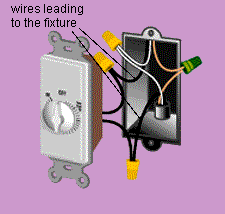 Fluorescent dimmer switches connect in the same way as incandescent dimmers, but you must equip each lamp with a special ballast. Remove the fixture. Mark the wires with pieces of tape so you'll know where to refasten them. Remove the lamp holders and disconnect their wires by poking into the terminals with a nail or thin screwdriver. Remove the old ballast and install a new dimming ballast. Reconnect the lamp holders. Reinstall the fluorescent fixture. If more than one fluorescent light is connected to a dimmer switch, all the bulbs must be the same size and share the same ballast (for replacing a ballast, see Troubleshooting Fluorescent Fixtures, Related Projects).