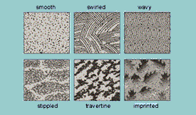 There are infinite possibilities for the final textures. The link "Select a texture" in the Index above will show you some of the standard textures. But you can experiment with different trowels and techniques to find the texture that pleases you. Just make sure you can reproduce the texture consistently over a broad area.