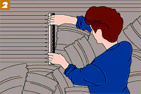 Once you start one wall, always complete it to avoid start-and-stop lines. Allow the scratch coat to harden only slightly, then scratch it with a plasterer's rake or a homemade tool like the one shown. (To make it, simply drive 4-penny galvanized nails through a piece of 2x2 at 1-inch intervals.) Scratch the entire mortar surface to a depth of about 1/8 inch, running the tool in long lines along the surface.