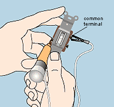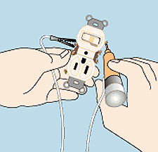 To check out a three-way switch, shut off the circuit and attach the clip to the common terminal (it's usually labeled on the switch body). Touch the probe to one of the other screw terminals, and flip the switch. If it's OK, the tester will light when touching one of the two terminals. Flip the switch. The tester should light when the other terminal is touched. |