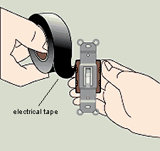 Inspect the wires in the box, and wrap any damaged insulation with electrical tape. Attach the wires to the terminals of the new switch, and wrap electrical tape around the body of the switch, so the terminals are covered. |