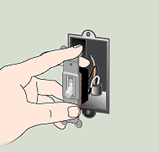 If a switch is damaged, shut off power to the circuit, remove the screws holding the switch to the box, and gently pull out the device. Loosen the screw terminals and disconnect the wires. |