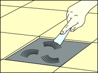 Once the tile is removed, you must scrape away all old adhesive from the floor so the new tile will lie flat. Sand off any remaining adhesive. |