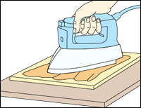 Use the iron to soften the new tile. Protect the tile's surface with a cloth. |
