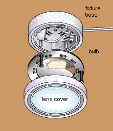 Once the fixture bases are installed, snap the lens cover onto the reflector ring. Some under-cabinet lighting kits come with a warning label to attach inside the cabinet door to caution users about the heat of the units.