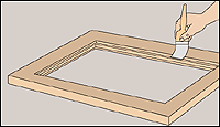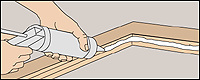 Apply a 1/4-inch bead of glazing compound. Press it into place to make sure it sticks to both glass and wood.